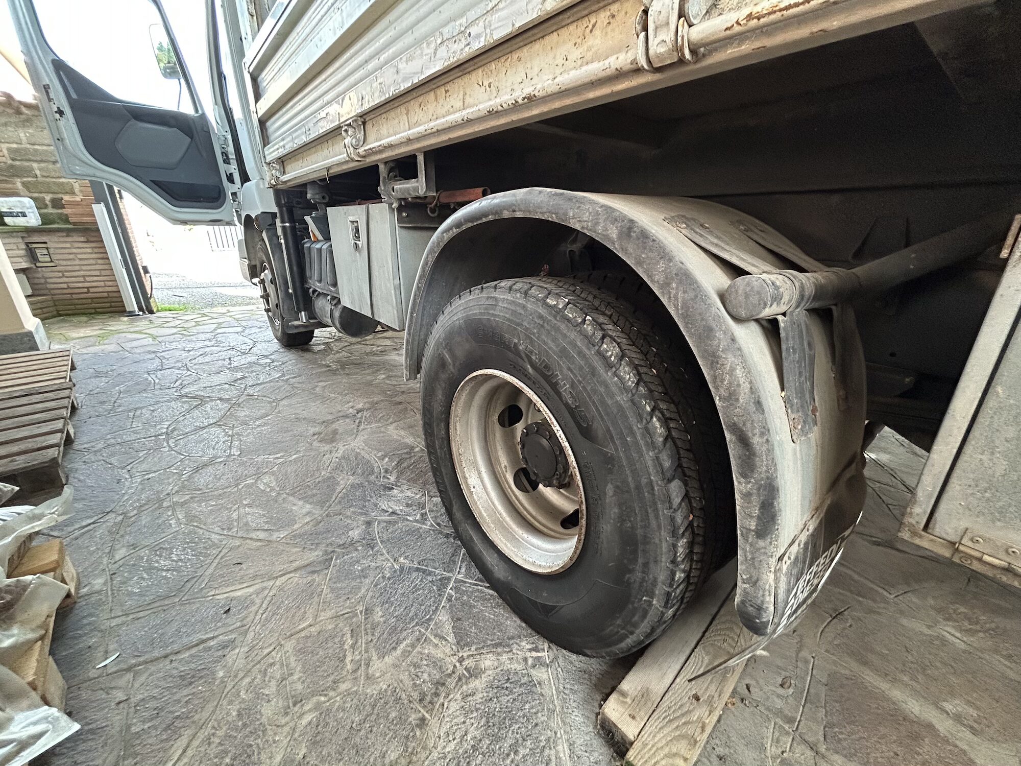 Dotato di cassone ribaltabile da 5730 x 2240 mm con sponde, permette il trasporto efficiente di materiali inerti, attrezzature e pallet, mentre la gru Bonfiglioli integrata consente operazioni di carico e scarico in autonomia, riducendo tempi e costi logistici. La trasmissione manuale garantisce controllo e precisione anche su percorsi impegnativi, mentre la cabina con aria condizionata assicura comfort durante le lunghe giornate di lavoro.