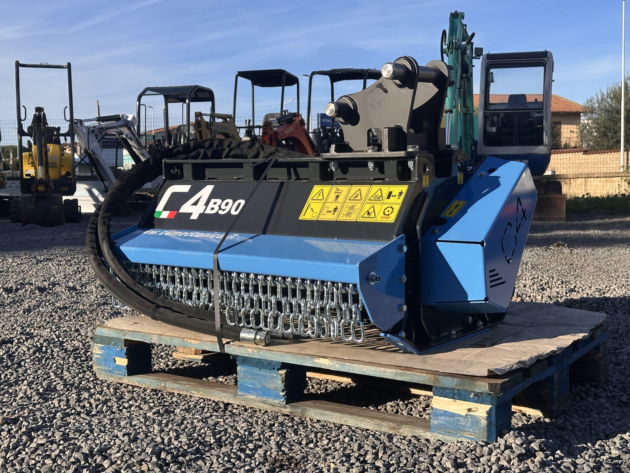 La C4 B90 è una decespugliatrice professionale per miniescavatori 3–4 t, predisposta per mazze. Larghezza taglio 890 mm, rotore ad alte prestazioni e protezioni antiusura. Ideale per manutenzione del verde, rovi e arbusti fino a 50 mm. Completa di sella e tubi.