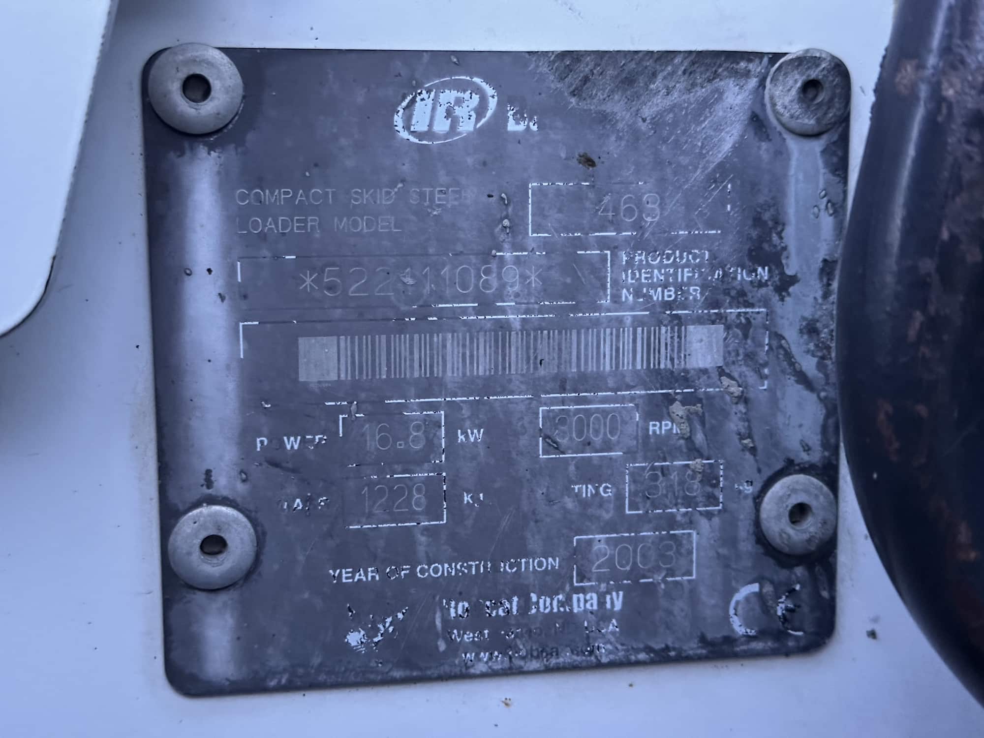 2003 Bobcat S70 wheel loader, 1,230 kg, 1,444 hours, open cab and loading bucket included. Good condition.