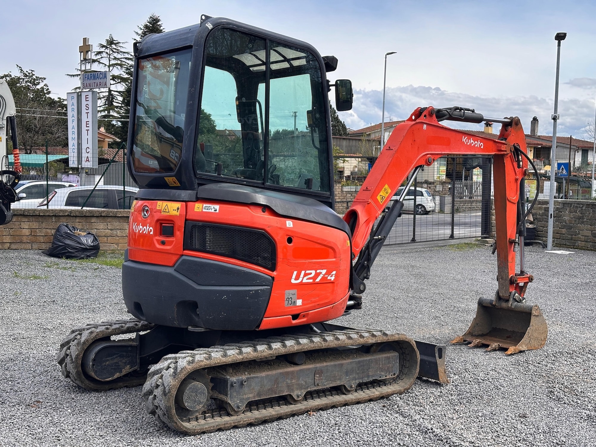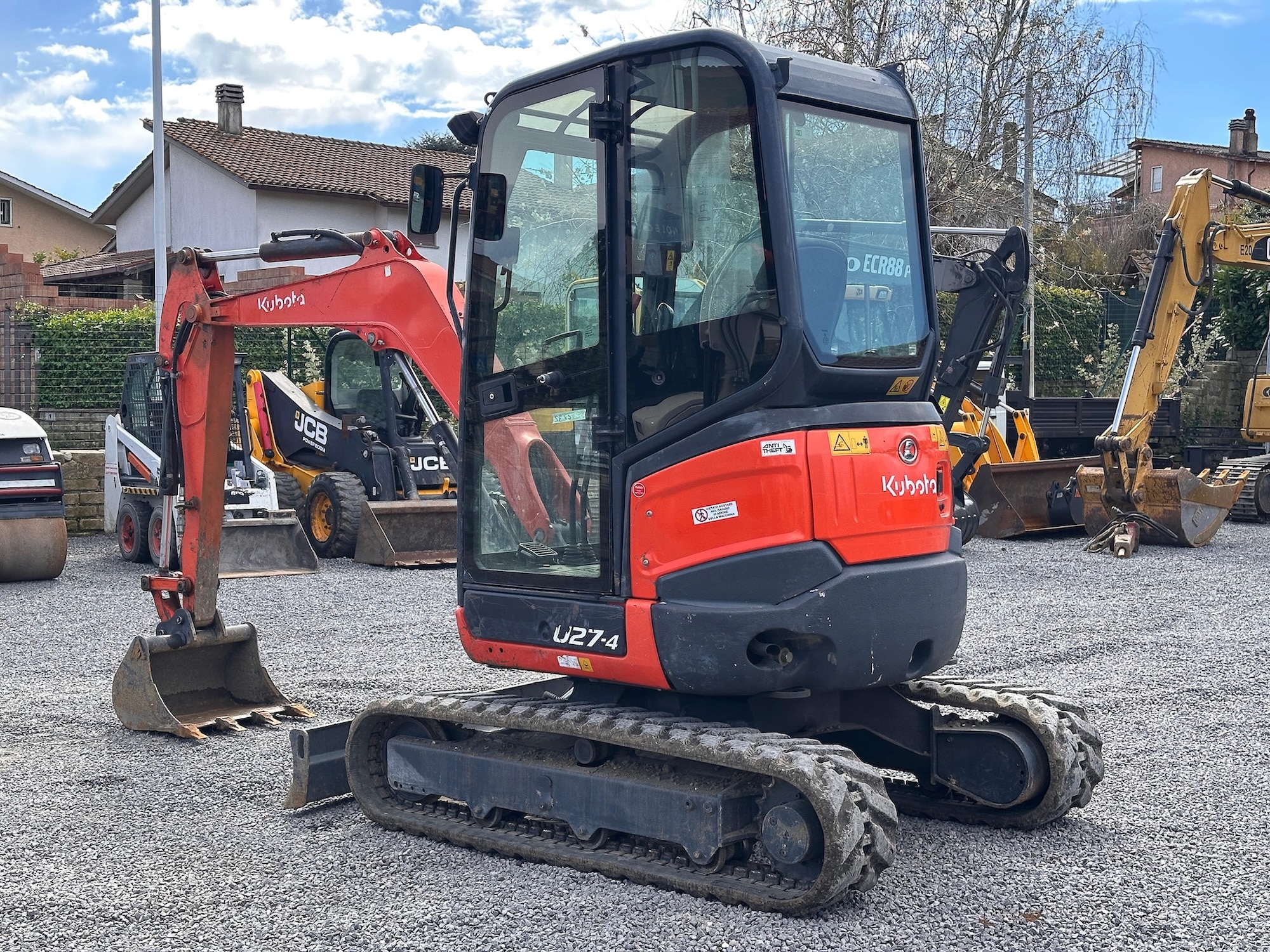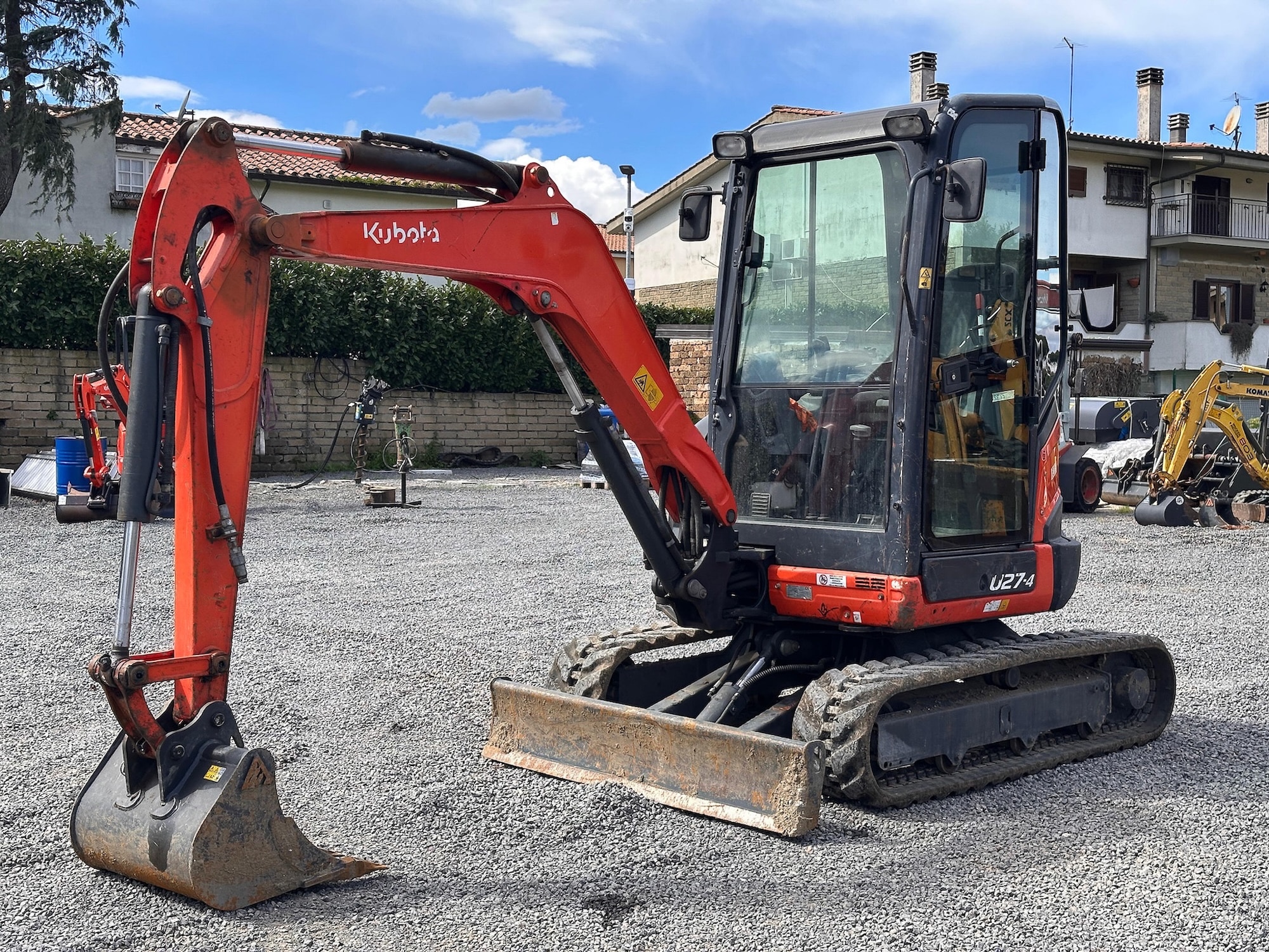 Miniescavatore Kubota U27-4 del 2017, usato e certificato CE, ideale per cantieri che richiedono compattezza e prestazioni elevate.