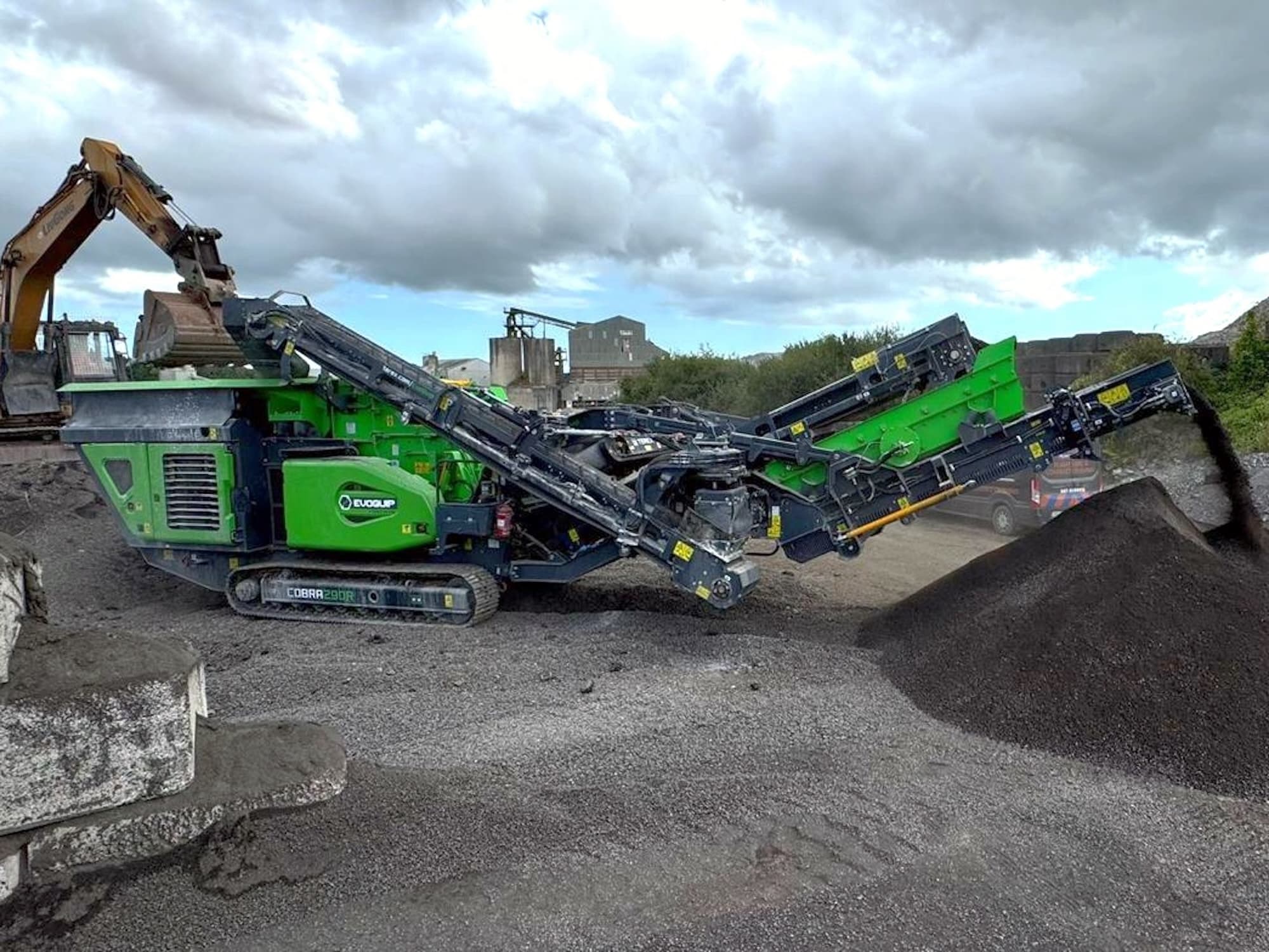 EVOQUIP COBRA 290R to kruszarka udarowa nowej generacji, zaprojektowana w celu zapewnienia wysokich osiągów i maksymalnej wszechstronności na placach budowy. Dzięki solidnej konstrukcji i mocnemu 6-cylindrowemu silnikowi Volvo, maszyna ta gwarantuje wydajność do 290 000 kg/h, co czyni ją idealną do intensywnej obróbki materiałów z rozbiórek, kamienia naturalnego i recyklingu.