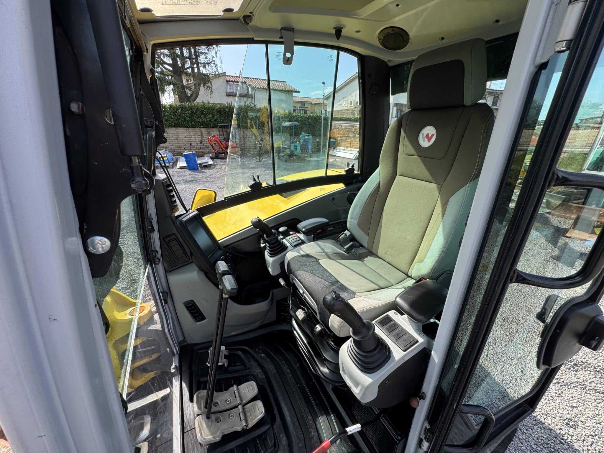 Maszyna, rok 2020 z 3830 godzinami pracy, wyróżnia się kompletnym wyposażeniem zorientowanym na produktywność. Zamknięta kabina z klimatyzacją zapewnia komfort podczas długich dni pracy, a kamera cofania zwiększa bezpieczeństwo operacyjne. Stały podwozie z gąsienicami gumowymi w 70% oraz podwójna prędkość gwarantują płynną mobilność na różnych terenach.