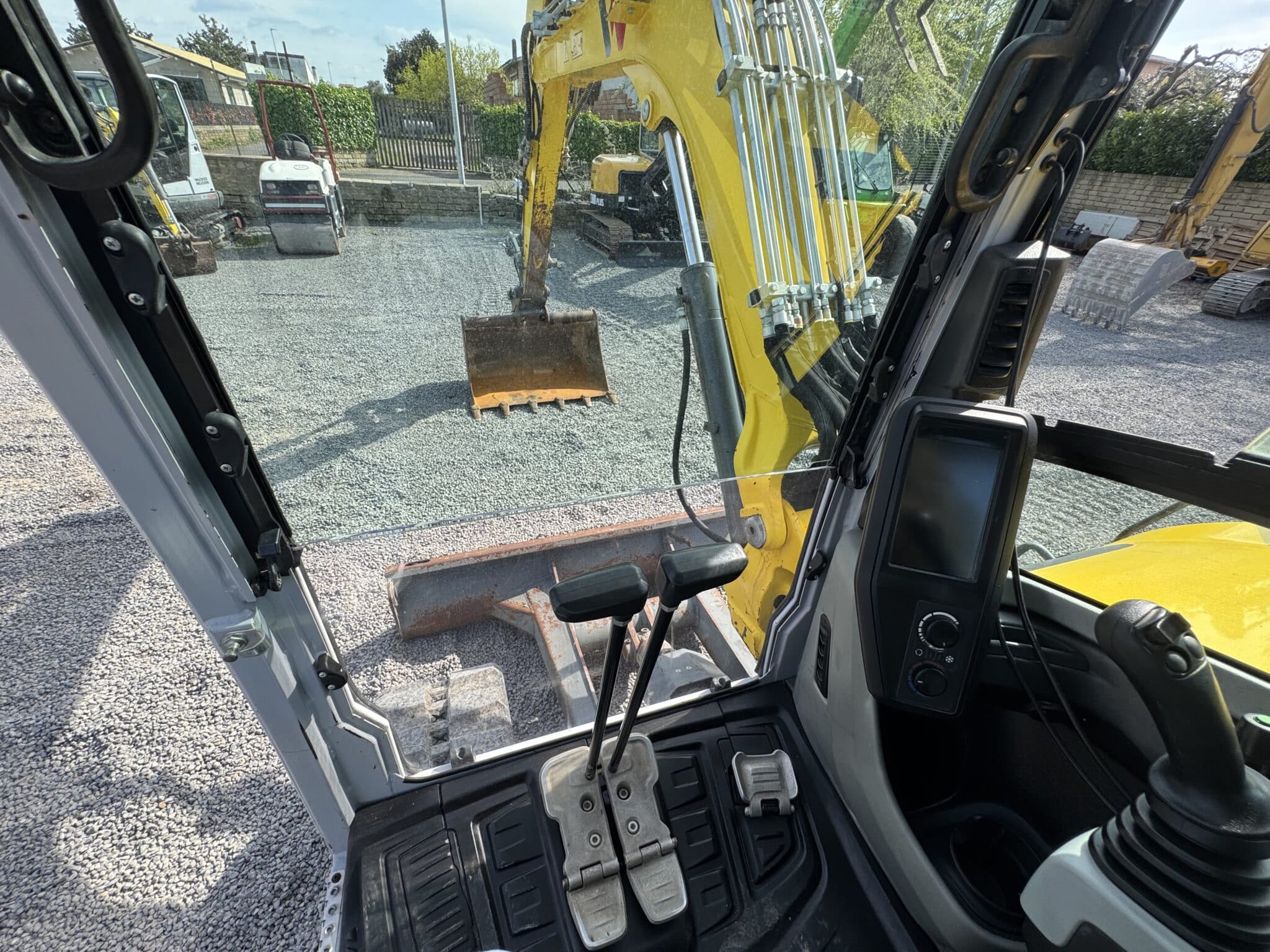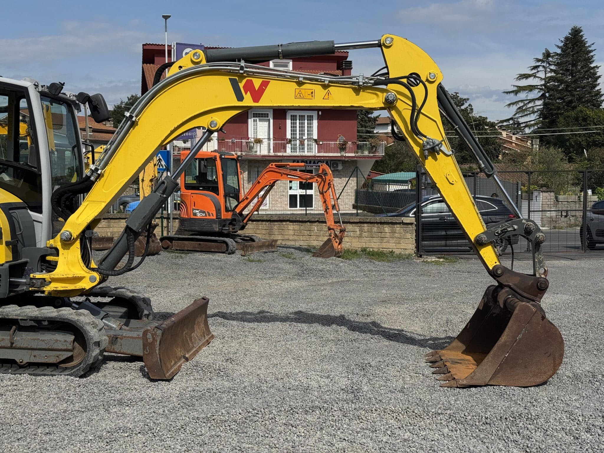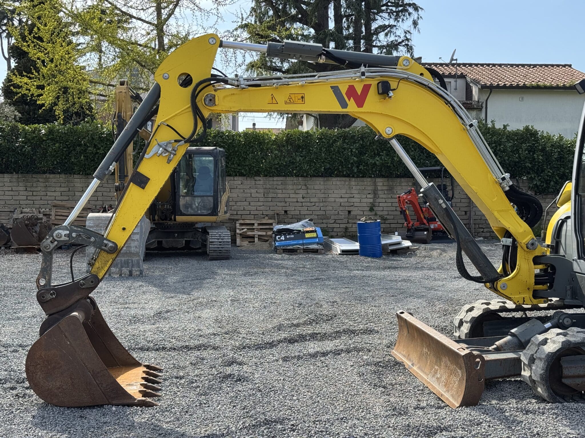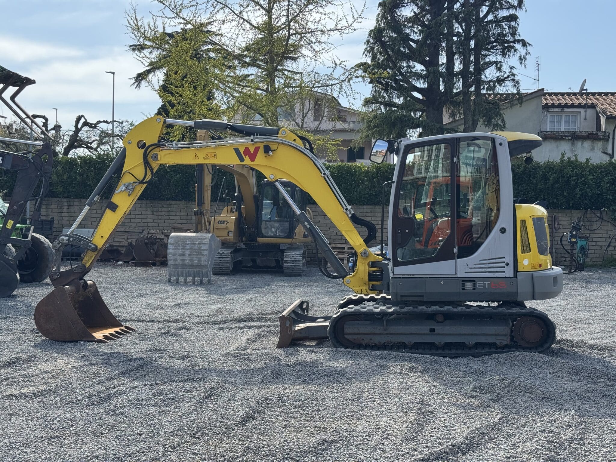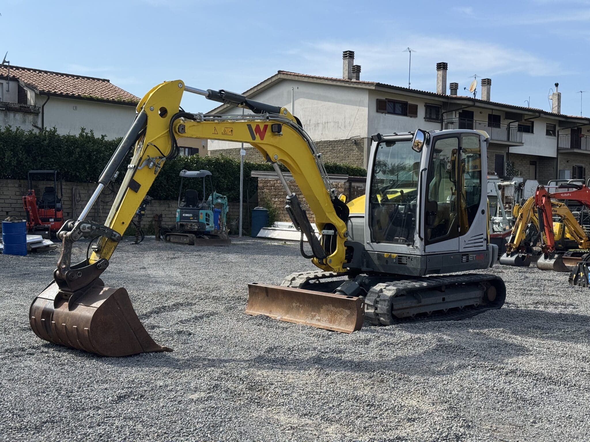 Z operacyjnego punktu widzenia koparka jest wyposażona w linię do młota oraz szybkozłącze hydrauliczne, co stanowi kluczowe elementy pozwalające na szybką i bezpieczną pracę z różnym osprzętem. Model ET65, wyposażony w łyżkę podsiębierną oraz lemiesz, jest gotowy do eksploatacji i zgodny z normami dzięki certyfikatowi CE. Maszyna dostępna w Anguillara Sabazia stanowi profesjonalne, niezawodne i natychmiast gotowe do pracy rozwiązanie.